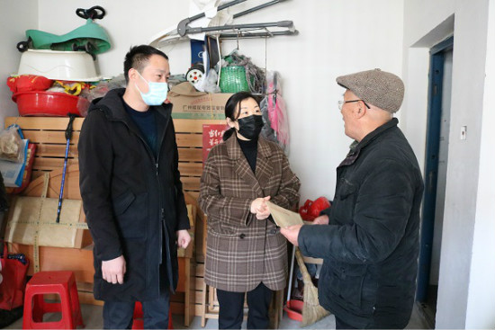 - 发布时间:2021-02-05 来源:庐阳产发春节将至,年味渐浓,为了让困难群众度过一个温暖祥和的新春佳节,2月5日下午,庐阳产发党支部联合汲桥新村社区党委开展困难群众走访慰问活动,为汲桥新村社区困难群众送上关爱和帮助,并致以新春的问候。庐阳产发党支部书记卫茹、总经理助理吴锋、汲桥新村社居委书记张凌云、副书记王华参加此次慰问。 “慰问困难群众,就...